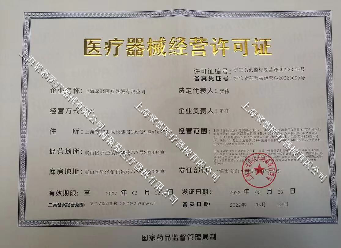 上海聚慕医疗器械有限公司 地址:上海闵行区联川路258号浦江智地精品商务园6B号楼3层301B 电话:13524532503 (沪)-非经营性-2022-0060