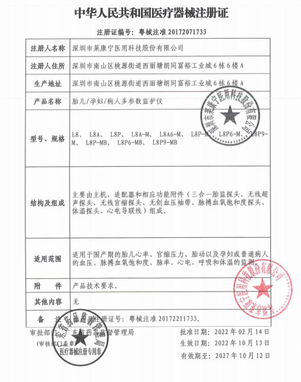 莱康宁胎儿多参数监护仪L8A、L8P6-MB