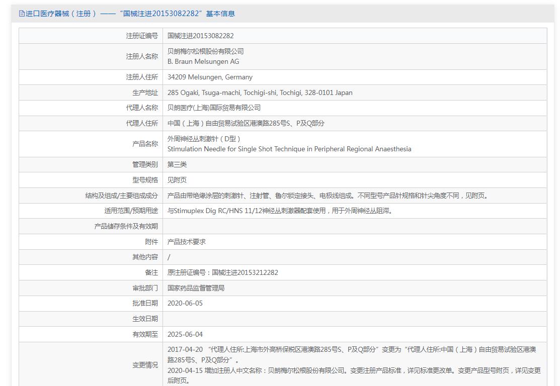 | 器械名称 | 厂商直销德国贝朗外周神经丛刺激针(D型)4892105CN/4864162N |
