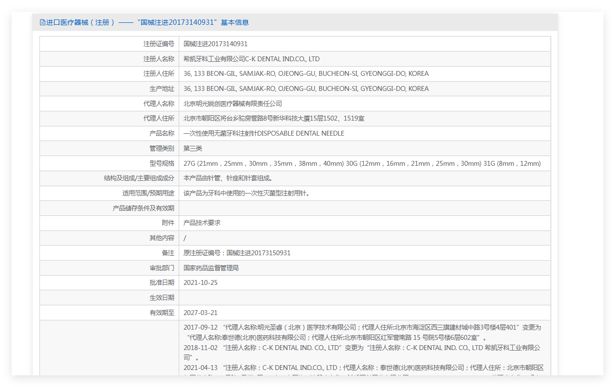 该产品为牙科中使用的一次性灭菌型注射用针