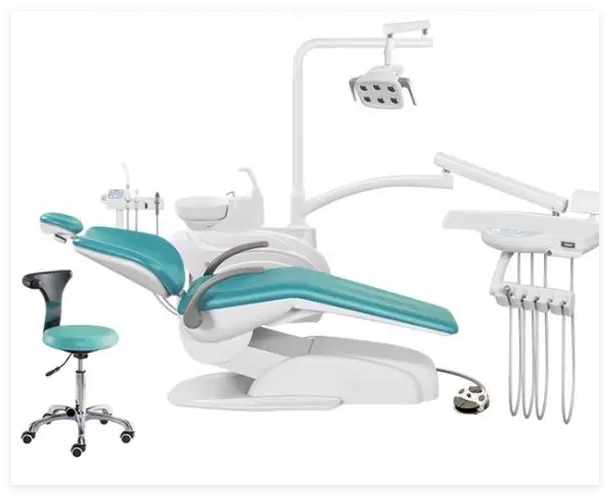 牙科综合治疗机由牙科治疗机、牙科病人椅及牙医师座椅组成。其中牙科治疗机包括主箱体、痰盂、器械臂、器械盘、灯臂、口腔灯、漱口冲盂给水装置、三用喷枪、强力吸引器、吸唾器、脚踏开关。本设备不包括牙科手机、光固化机、洁牙机。