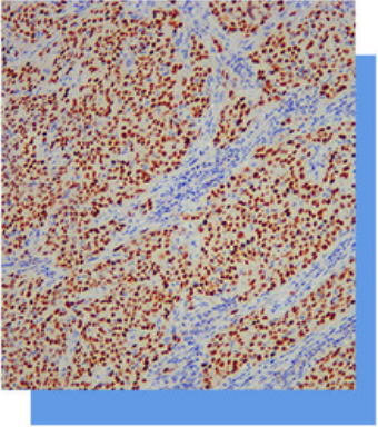 由于p63基因与抑癌基因的p53基因在DNA结合域有高度同源性,现认为是p53基因家族的同源性基因。在乳腺、涎腺及前列腺等肌上皮细胞和基底细胞以及皮肤基底细胞中p63+,在腺上皮细胞p63-.可以联合其它特异性抗体判断肿瘤的良恶性。其主要应用于鳞状细胞癌(如基底细胞样鳞癌、梭形细胞癌)、基底细胞乳头状瘤