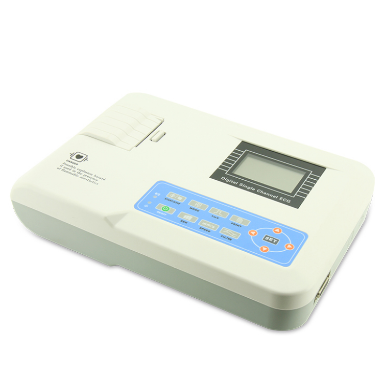 单道心电图机采用热阵打印系统将心电波形打印输出;能够提示导联脱落及缺纸;可切换多种界面语言;有自动/手动方式记录心电波形,方便操作。