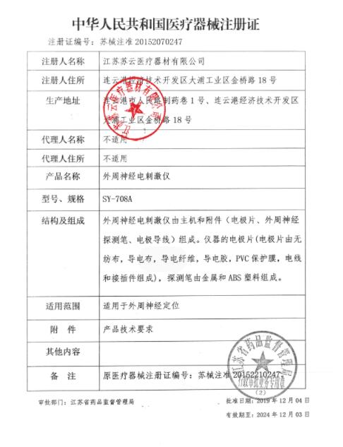 一次性使用外周神经刺激针采用医用聚丙烯高分子和医用不锈钢针管等无毒材料制成。由插头、内外锥接头、导管(选配件)、金属座、针座、护套、绝缘管或绝缘层、针管和导线组成,按针管外径不同分为十一个规格,产品应无菌。