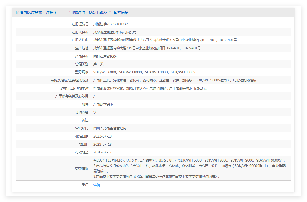 视达康 眼科超声雾化器 SDK/WH 6000、SDK/WH 8000
