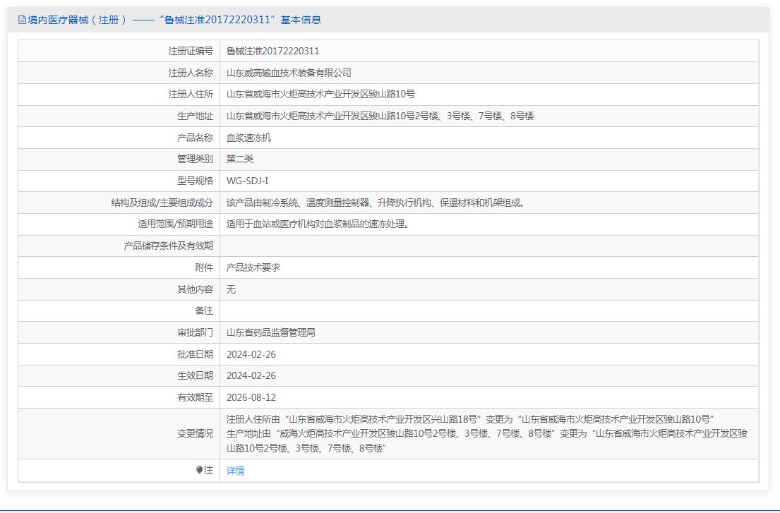 威高 血浆速冻机WG-SDJ-I