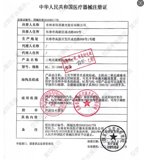 科英 二氧化碳激光治疗机KL、JC-100D、KL-R