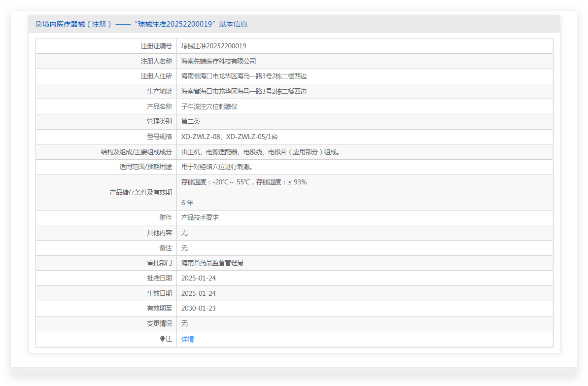 ▲1、医疗器械注册获批产品名称:子午流注穴位刺激仪;